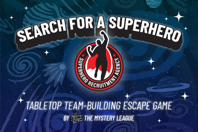 Search for a Superhero is a unique tabletop escape experience that brings the thrill of a full escape room directly to your venue. Perfect for teams of 5-500 players, this two-hour adventure challenges your group to find Earth's next superhero through puzzles, original artwork, and collaborative problem-solving.