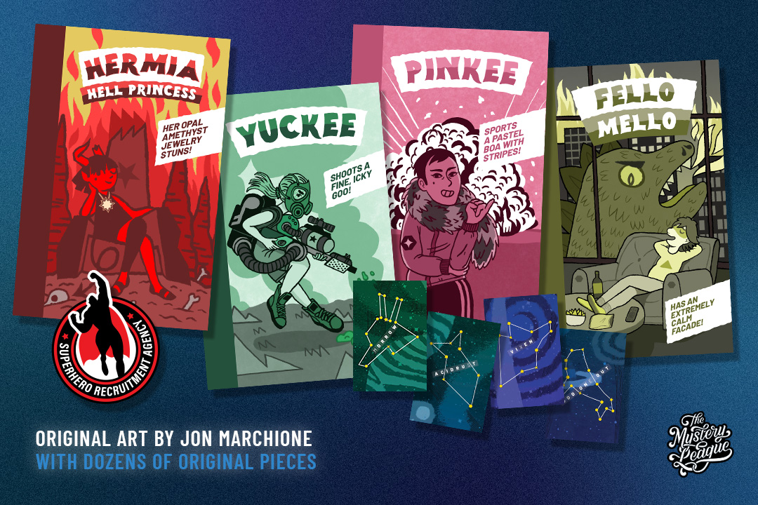 The game features dozens of pieces of original art, by illustrator Jon Marchione.